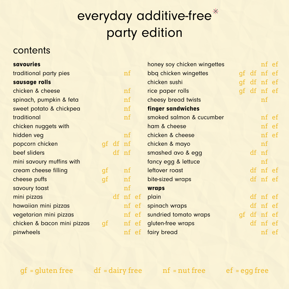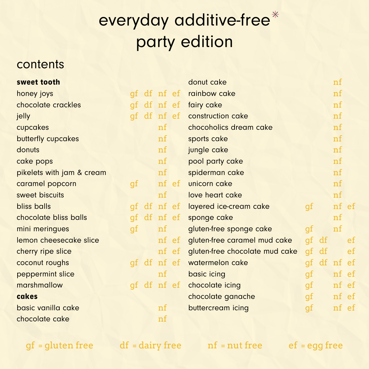 🎉 Parties are often packed with artificial additives (especially colours) that seem fun at the time, but leave your child a hot mess.  Often these additives are linked to hyperactivity, insomnia, tantrums, stomach aches and frustrations.